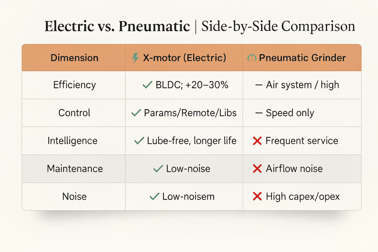 - 20–30% higher system efficiency (high-efficiency BLDC motor).